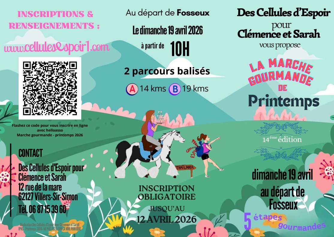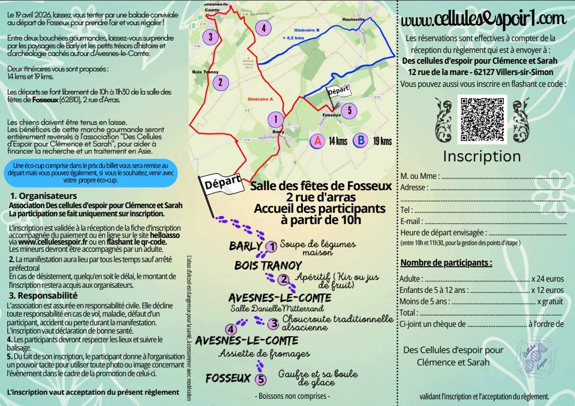 Le Dimanche 19 Avril, venez participer à la marche gourmande au départ de Fosseux et qui passera par la commune. Vous profiterez d'une balade conviviale à la découverte des sentiers et paysages du secteur et vous vous régalerez avec les différents plats qui vous attendront tout au long du parcours.
